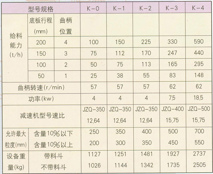 K型往復(fù)式給煤機(jī)用于煤或其他磨琢性小、粘性小的松散粒狀物料的給料,將儲倉或料坑里的物料連續(xù)均勻地卸落到運(yùn)輸設(shè)備或其他篩選設(shè)備中。